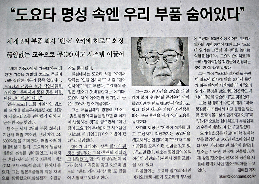 ¼¼°èÀûÀ¸·Î ÃÊÀÏ·ù ±â¾÷¿¡´Â ¹«¾ð°¡ ³²´Ù¸¥ °ÍÀÌ ÀÖ½À´Ï´Ù. ±â¾÷ °æÀï·ÂÀ» Çâ»óÇϱâ À§Çؼ´Â ÇÁ·Î¼¼½º(Process), ±â¼ú(Technology), ±×¸®°í Á÷¿ø(People)ÀÇ 3¹ÚÀÚ°¡ °ñ°í·ç °æÀï·ÂÀ» °®Ãß°í ÀÖ¾î¾ß ÇÕ´Ï´Ù. ƯÈ÷, Á÷¿ø¿¡ ´ëÇÑ ²÷ÀÓ¾ø´Â ±³À°ÈÆ·ÃÀº ÃÊÀÏ·ù »óǰÀ» ¸¸µå´Â ºñ°á·Î ÀÚ¸®Àâ°í ÀÖ½À´Ï´Ù.