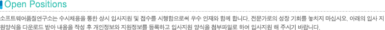 - 소프트웨어 개발 2년 이상 경험자로 해당 희망업무 분야의 전문가로 성장하고자 하는 분
